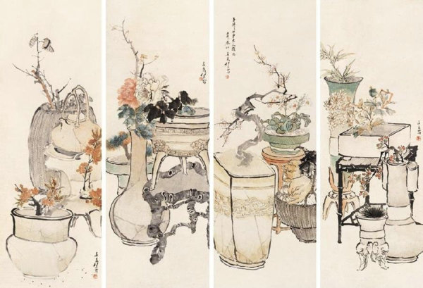 清朝末年[海上畫派]代表畫家──「海上三任」──擅長重彩著色的[任薰]