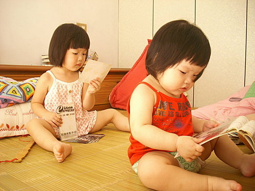 妹妹:翻書也好無聊 還是來玩梳子吧