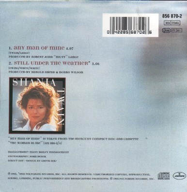 歐洲版專輯封面 北美鄉村流行女皇〔仙妮亞唐恩〕的成名曲──冠軍經典--輕快俏皮的〔Any Man Of Mine〕 This is what a woman wants...
