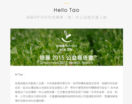 一份有溫度的電子報會是什麼模樣?看看綠藤怎麼做 [轉載自動腦新聞網](2017-03-17)為什麼綠藤生機所發出的電子報,會讓人家覺得,是一份有溫度的電子報?
