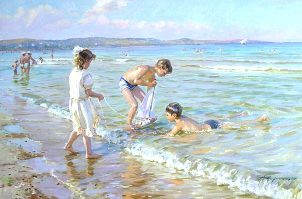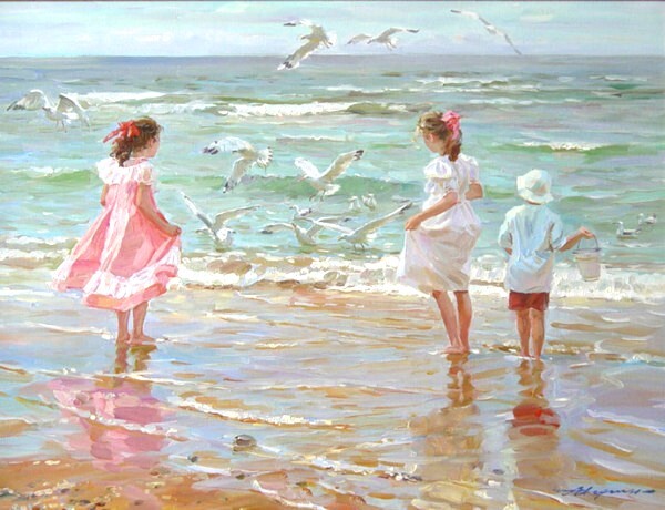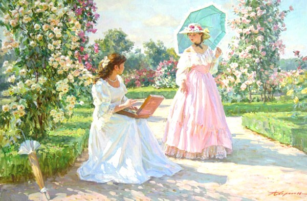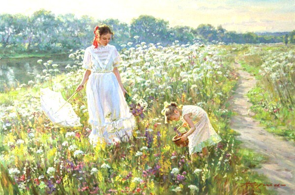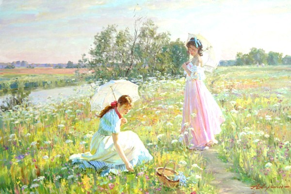 俄羅斯藝術家Alexander Averin,以水彩畫著稱,他的畫多在水涯或花叢之間,以婦女與兒童為主體,著重以情景表現人與大自然的融合。 |