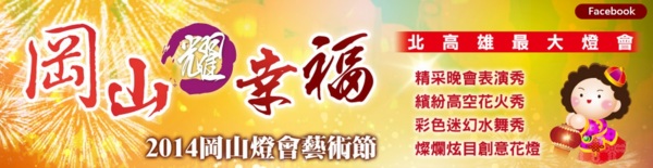 2014岡山燈會藝術節【高雄市】103年1月31日至2月4日 *活動燈區展示延長至元宵節(2月14日) 岡山燈會耀幸福 精采閉幕愛蔓延 高雄市政府新聞(2014-02-04) 2014年岡山燈會,在璀璨的高空煙火、驚豔3D水舞表演、賞燈人潮不斷的驚嘆聲中,在2/4(大年初五)畫下完美句點。高雄市政府帶領岡山區公所團隊以及到場貴賓,與活動民眾共同欣賞幸福蔓延的燦爛煙火水舞秀,希望幸福快樂蔓延2014一整年不間斷。 岡山區公所為2014年岡山燈會藝術節推出五大創新,包含首創螺絲為主體的「洋洋得意,提前來到」高達六米高主燈耀眼岡山,二首創連續五天展開煙火水舞秀;三首創展出由3650朵led玫瑰花手工拼貼而成的「幸福花嫁」花燈;四首創舞台活動期間天天有賀春藝人壓軸演出;五首創抽環保機車活動,讓民眾春節到岡山燈會,除了驚豔花燈可賞,還可能抽中環保機車,搶得開春好彩頭,活動會場也邀集將近百攤位滿足遊客吃、喝、玩、樂需求,從花燈、節目、美食處處融入岡山在地特色,帶給民眾多元樂趣且更具深度文化的岡山燈會。 連續五天精采活動每天都湧進滿滿的人潮,岡山區袁區長表示,民眾踴躍參加活動為公所團隊帶來很大的鼓勵,更有信心在明年為民眾帶來更加盛大、更加精采的岡山燈會。 活動燈區展示延長至元宵節,讓民眾可利用週休二日到岡山,一睹岡山主燈的驚豔風采。 |