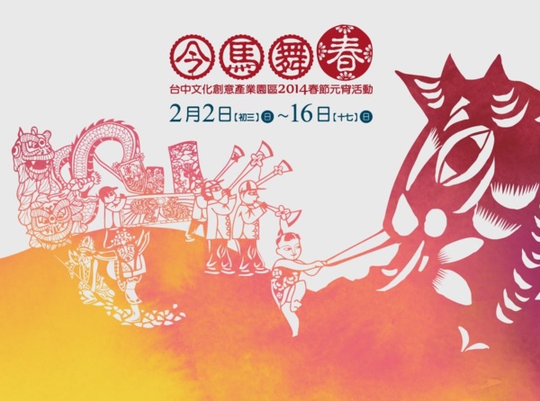 【主題展覽】3場特展(免費觀賞) ※重生:鄒族戰祭特展 《雅堂館》1/26(日)~3/9(日)10:00-18:00(除夕~初二休館) 「高山青」這首歌無人不知、無人不曉,阿里山的小火車和神木也赫赫有名,但您知道世居阿里山的「鄒族」嗎?鄒族最重要的戰祭(Mayasvi),原本是與戰鬥有關的祭儀,整體氣氛嚴肅凝重,且具男性勇武的氣息,然而,今天早已不再獵首,也沒有部族間的戰鬥,可是戰祭仍是鄒人心中最重要的傳統祭儀文化之一,更成為文化部指定的國家重要民俗。 文化部文化資產局為讓社會大眾瞭解鄒族文化的箇中奧祕,自1月26日至3月9日在台中文創園區舉辦「重生:鄒族Mayasvi特展」。本次特展有來自國立臺灣博物館與中央研究院典藏的多件珍貴鄒族文物;也透過與部落合創機制,呈現精采的部落藝術家作品、達邦國小學童的戰祭大幅繪畫創作,還有來自部落婦女們親手縫製的傳統服飾,以及許多部落珍藏的記憶畫面與寶物。新春展覽期間,也準備定時導覽與不定期的講座分享活動,讓大家發掘鄒族文化的「重生力量」。 ※吉林旅遊攝影圖片展 《渭水樓》2/2(日)~2/6(四)10:00-18:00 美麗富饒的吉林省,江河山川雄渾壯美,歷史文化源遠流長,民俗風情古樸純厚,生態環境優美和諧。 巍巍長白山,滔滔松花江,濃濃關東情,賦予這片神奇的北疆大地獨特的魅力。 關東神韻•大美吉林。一個個經典瞬間和一幅幅美妙攝影,一定能喚起您的心動神往。 ※快樂動物派對-洪易個展 《國際展演館》1/4(六)~3/10(一)10:00-18:00(除夕~初二休館) 洪易先生繼日本箱根雕刻之森美術館的個展閉幕返台後首次舉辦大型個展,展出55件造型各異的各種動物;路經復興路台中文創園區大門的人,是否你的眼光被疊羅漢的山羊吸引住了呢,順著本園區藝術大道前進,兩隻大大的恩愛鴛鴦及色彩鮮豔的客家花布鴨正親切的和你打招呼喔,來到中央廣場,兩隻鼻子相連的大象,形成一座愛的拱門,絕對是拍照不可錯過的最佳地點,大樹下一大一小兩隻活潑的兔子在嬉戲,抬頭往上看,一隻龍蹲踞在國際展演廳屋頂,小花貓則在另一側屋頂觀察動靜,走進國際展演廳,真正的Party就在這裡,台中文化創意產業園區現在化身成了動物的快樂天堂。 【民俗表演活動】(免費觀賞) ※ 吉林民俗表演:2月2日至6日,包含蒙古族馬頭琴獨奏、朝鮮族象帽舞、滿族舞蹈等。 ※ 活動期間逢週六日及春節假期:邀請台灣學甲中洲高蹺陣、法天壇、飛鴻館、缺席舞團、特技空間、橘火舞團、小林大滿舞團、明珠女子歌劇團、九歌兒童劇團、黃俊雄布袋戲、鴻德醒獅團、treet party、CAPT文化藝術團等多元精采的演出內容。 【文創及美食市集】 ※ 2月2日至6日:吉林特色美食、傳統手工藝。 ※ 2月2日至16日:台灣特色市集。 【新春開幕活動】 2月3日(農曆初四)下午2時,舉辦2014春節元宵活動開幕活動,現場將贈送春節限量福袋300份。活動期間,另有「今馬走三關、來作伙」集戳章抽獎、消費滿五百抽好禮、FB上傳照片分享讚等好康活動,讓您玩得開心又滿載而歸! 【整體活動訊息】 活動名稱:今馬舞春~台中文化創意產業園區2014春節元宵活動 活動地點:台中文化創意產業園區(台中市南區復興路3段362號) 活動期間:102年2月2日至2月16日 開幕活動:2月3日(初四)下午2時至3時40分