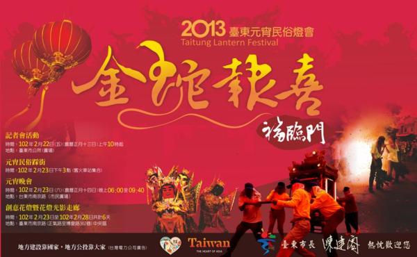 2013臺東元宵民俗燈會-金蛇報喜福臨門系列活動 活動期間: 2013臺東元宵民俗燈會四大情境主題: 元宵燈會的規劃分為以「金蛇報喜福臨門、龍行天下護臺東、財源廣進辛勤建、文化創意展新閣」情境主題區展示區,涵意於龍年平安結束迎接金蛇到來,建閣期許金蛇年國泰民安,風調雨順,更希望政府與人民同心協力,開創地方建設及經濟環境,增進人民福祉,傳承藝文及多元文化,挹注創意展現新生命力,共同打造臺東新契機。 燈會區還包含寒單爺主題燈、燈海隧道區-百福門(客家花布燈籠)、開放式競賽(參展)花燈區(由企業及機關提供花燈作品)、築夢踏實~創意無限(矯正機關收容人技藝精選花燈作品)、互動區(闖關互動區)、祈福區、回顧區(12生肖、神明公仔等),增添街景元宵熱鬧氛圍。 元宵晚會於 臺東市公所新聞( 一年一度的元宵節臺東燈會,即將在102年2月23日點燈,臺東市公所的工作人員正在加緊趕工,希望能在燈會點燈之前,將最完美的內涵呈現在民眾面前。 臺東燈會在去年打出知名度後,儘管今年預算比往年更少,但是為了不讓民眾失望,臺東市公所民政課的承辦人和課長,不斷的和許多民間單位以及矯正單位聯繫,將最好的作品拿到燈會會場展示,今年的燈會作品,比去年更優質,作品件數也更多,相信民眾可以期待。 市公所的工作人員,從大年初五就取消休年假,全力投入燈會會場的布置,每天也都排有工作人員值班,以免民眾因為喜愛誤觸讓作品受損,市公所也呼籲民眾,在燈會點燈之前,民眾如果到燈會會場賞燈,最好遠觀,避免觸摸。 本次燈會場地分布介紹如下: 1:四大情境主題曲:由法務部矯正署宜蘭監獄製作。 2:寒單爺主題區:由岩灣技能訓練所製作。 3:燈海隧道區:由宜蘭監獄製作。 4:開放式競賽參展花燈區:參展區企業和機關包括: 臺東聖母醫院、統一超商、宜蘭監獄、羅東鎮仁和社區發展協會、臺東縣後備指揮部、娜路灣大酒店、臺東縣消防局、空軍737聯隊、岩灣技能訓練所、自來水十區管理處、宜蘭五結鄉公所、中華電信臺東營運處。 5:可愛動物區:宜蘭監獄。 歡樂卡通區:宜蘭監獄。 歷史人物區:國立傳統藝術中心。 6:築夢踏實-創意無限:由東成技能訓練所統籌。參與單位有東成、岩灣、泰源等技訓所以及宜蘭監獄和臺東戒治所等 臺東市公所新聞( 2013臺東元宵民俗燈會即將於 臺東市公所表示:因為公所自有財源拮据,每年都必須向上級和各相關單位爭取經費,今年雖獲得了交通部觀光局補助30萬,縣政府補助30萬,但仍無法應付辦理燈會所需,因此,市公所同仁從大年初五開始,犧牲假期以現有人力全力以赴,並且在各監所和本地企業的全力贊助下,儘可能的撙節經費,營造小而美,小而巧的元宵燈會氣氛。 今年燈會場上的花燈作品,都是各監所的同學所製作,也是監所同學們在技訓所中的所學成果,包含了-動力運轉、聲光效果以及美學藝術的展現,特別要感謝各監所對這次活動的支持與用心,同時也對同學們的精湛技藝給個『讚』。 市公所表示:花燈的製作既費時又費工,以一座 去年燈會受到民眾的肯定和迴響,因此,今年特應民眾的要求,在展場後方設置回顧區,將去年較具特色及得獎的作品,以及受到小朋友喜愛的花燈系列再次陳列,加上投射燈等,規劃不同於去年的聲光效果。 20日晚間試燈結束後,發現仍有部分缺失,由於還在布展整理階段,因此,缺失部分已委由布展廠商逐步改進,希望在正式開展時,能讓民眾感受到燈會的色彩繽紛。夜間的燈會場區璀璨奪目,在影音燈光的效果催促下,臺東的星空會更美,歡迎大家從 台東玄武堂建廟安座大典暨2013慶元宵東寒單祈福文化季 |