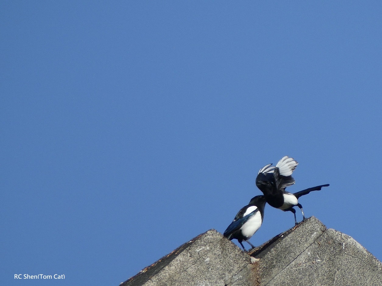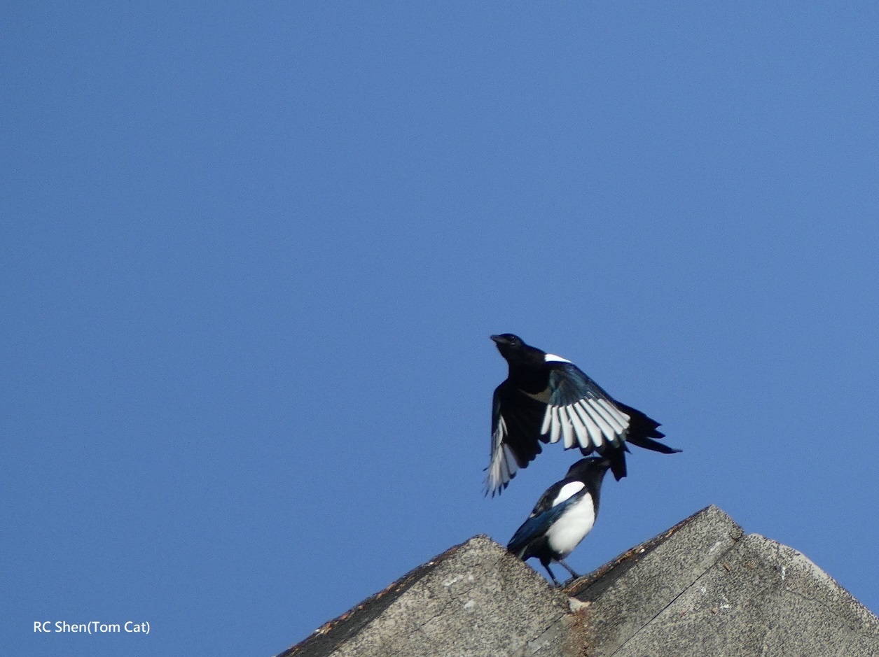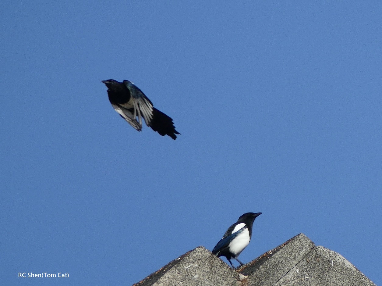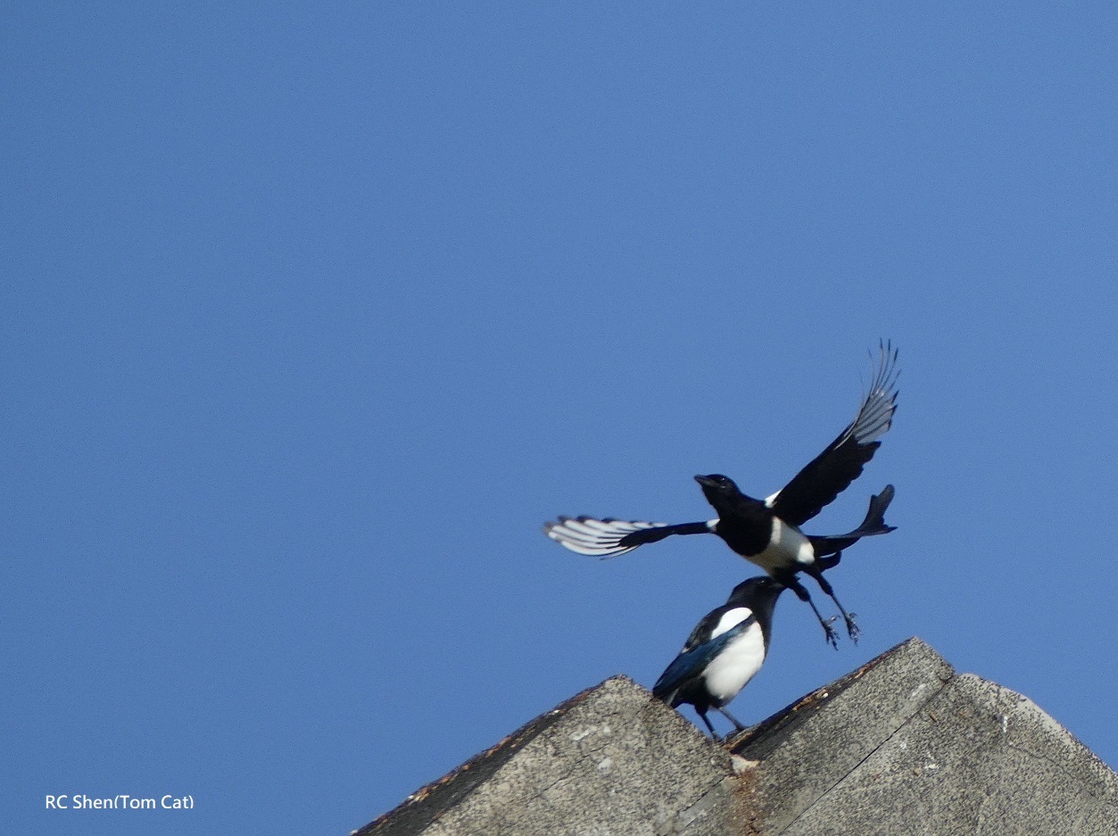 喜鵲鬥鼓嘴展翅起飛? 展現香奈兒黑白的羽翅與變換不同的飛行姿勢,822mm手持連12拍。