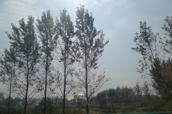 沿路全是名勝古蹟,途經小麥的田園,叫人着迷就屬美麗的白楊樹了,四季風情不一,三月綠芽油油,十月天枝椏佇立,寒天著雪白衣。G4北京一路南下,120車速呼呼,白楊一路相隨。
