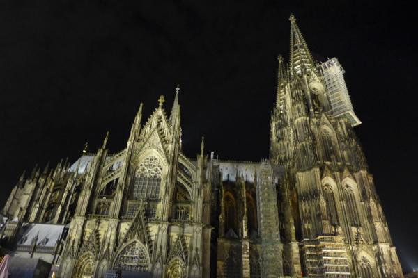 科隆主教座堂(Kölner Dom,Hohe Domkirche St. Peter und Maria) 夜半鐘聲響 不眠的人群 對著雕樑畫棟 讚嘆眼神 不忍移離 噠噠 石子路聲響 我猶見 曖曖光圈 睥睨著 月落日升
