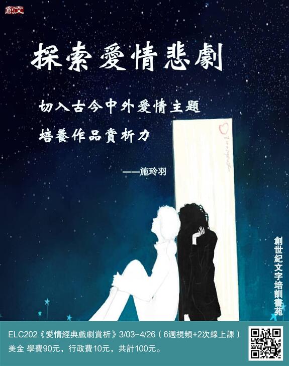 恩典的牧養,起於對靈魂的訴說。那麼,什麼樣的文字能對人的靈魂說話?我們怎樣才能寫出對靈魂訴說的文字呢? 探索愛情悲劇,切入古今中外愛情主題,培養作品賞析力。歡迎查看文末海報,瞭解ELC202《愛情經典戲劇賞析》。