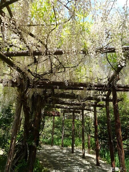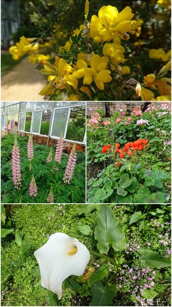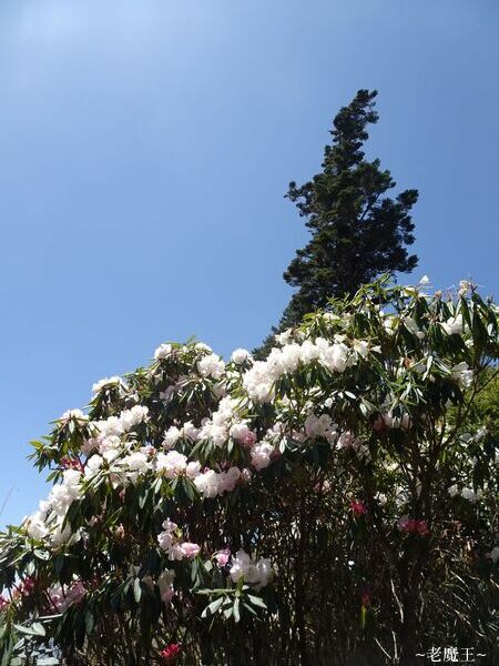 小朋友聽我這麼一說, 驚恐的眼神快滴出眼淚! 我問她 "你很想上山是不是?" 她微微點頭. 我又說 "可是你整晚都沒睡覺, 你這時是沒辦法上山的. 除非先強迫你睡一覺, 但早上 7 點鐘, 也必須有人能帶你上山." 她委屈地看著我, 不敢說話; 我又問了她一次, 這回她很堅決地告訴我她想上山. 為了讓小朋友圓夢, 我只好請老師打電話給家長, 跟家長解釋了現況. 家長表示她以前就常常說胸悶, 但是到長庚醫院檢查好幾次, 都說沒問題. 因此, 在家長和師長的同意下, 我開了半顆放鬆情緒的藥給她吃, 讓她先睡一下, 其他學生則分隊陸續由嚮導帶領上山. 送走大隊人馬後, 我和美秀終於可以去睡覺了 (到目前為止, 我被折騰到完全沒睡覺). 早上 6:40 am, 何主任過來跟我說, 小妹妹完全沒症狀了, 想上山, 問我可不可以? 我問了她幾個問題, 知道她睡了大約 3 小時, 現在沒有任何不舒服, 因此便請何主任帶她上山. (後來她只花了 3 小時便爬上雪山東峰, 比大部分的同學還快!) 我睡到 8 am, 美秀已經上山去跟其他人拍照, 我便按照原定計畫, 下山到登山口, 開車到武陵賓館, 到世偉的房間洗澡. 接著, 載世偉去看櫻花鉤吻鮭後, 我便自己在花園散步賞花. 武陵農場的花況, 一直維持得不錯, 雖然今年紫藤提早開花, 現在已經快枯萎成白藤了; 但海芋, 天竺葵, 魯冰花, 報春花和金雀花都開得很茂盛.