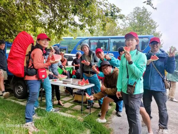 大夥兒來到停車場, 吃著香甜的西瓜, 享受這 "任務完成" 的喜悅.