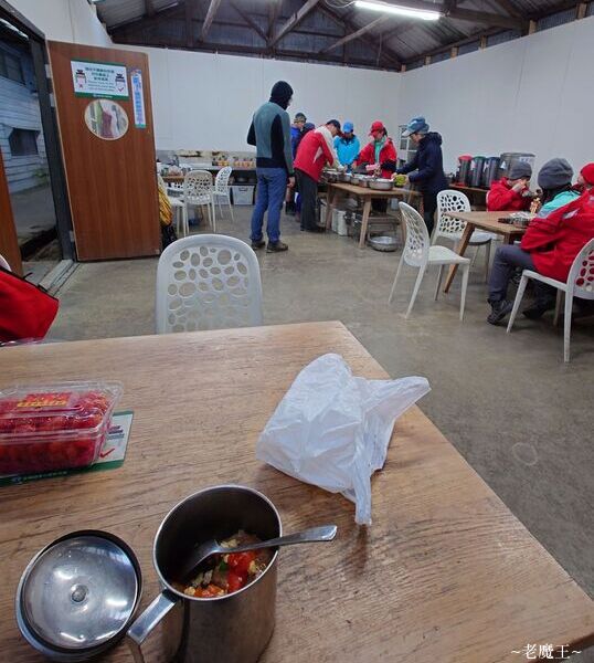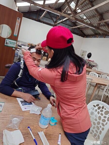 等所有師生和嚮導們都抵達七卡山莊後, 先讓他們補充水分, 穿上外套保暖, 我們便做簡單的健康檢查, 包括量測血氧, 心跳, 並詢問是否有什麼不舒服. 有些小朋友在此時就開始頭暈沒力, 經過衛教以及強迫喝水後 (山莊已經準備了一鍋薑湯及綠豆湯), 大多都在半小時內便沒事了.