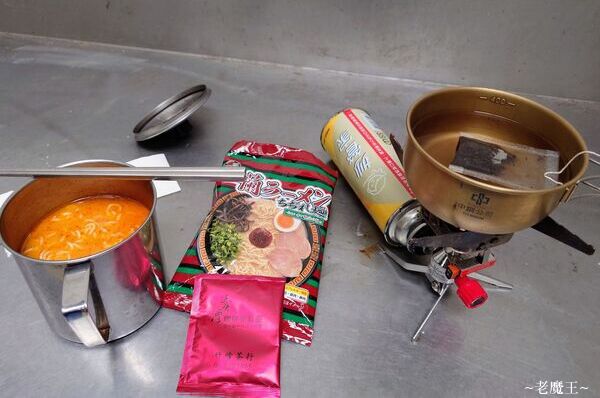 由於要趕在學生們回到七卡山莊前先回去, 因此我不多逗留, 拍照後, 便直接下山. (後來在哭坡觀景台, 還是忍不住吹笛子 20 分鐘, 反正超前他們很遠.) 學生們的午餐是麵包和點心, 我則自己煮泡麵來吃. 有經驗的人都知道, 在山上吃到熱騰騰的泡麵, 再來一杯香濃的咖啡或茶, 絕對是一場幸福人生哪!
