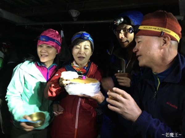 突然有人拿出一個小蛋糕, 原來是貼心的 Gina 從天母買了一個起司蛋糕, 要給一月份的壽星慶生. 上次我們爬八大秀時, 彼此知道都是一月份生日, 這回她特地帶這個蛋糕上來, 我們可以一起慶生. 現場一吆喝, 居然有五個元月寶寶, 比例算大喲!