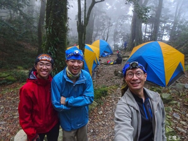 在大家合唱不同版本的生日快樂歌下, 一邊喝酒, 一邊吃蛋糕, 完全不知道明天還有很恐怖的大陡坡在等著我們. 晚上我 6:50pm 鑽進帳篷, 不到 7 點就睡著了, 但斷斷續續醒來, 居然在 11:40pm 醒來後, 就再也睡不著了! 挖咧~ 等一下 1 點鐘就得起床了呀! |