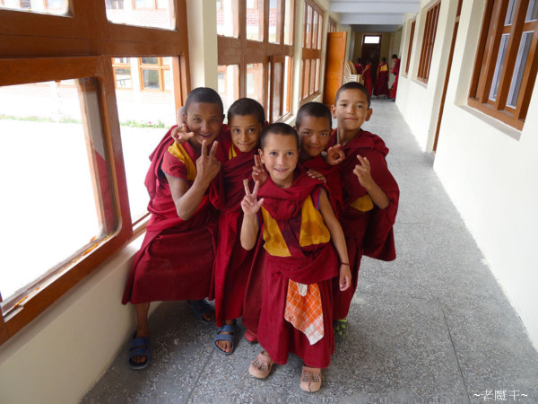 語言 拉達克這兒, 百分之八十都是藏民的後裔, 但地處印度管轄, 所以當地小朋友一開始要學印度語及拉達克語; 進階一點的, 才開始學藏語. 我們剛出機場大門時, 校長來接我們, 我開口打招呼道 "Namaste", 結果校長回了一句 "Juley". 後來問了另一位喇嘛, 我才知 "Juley" 是拉達克語, 舉凡打招呼, 問候, 道別, 祝福, 都是說 "Juley"! 至於藏語, 他們稱之為 "佛陀的語言", 並沒有那麼普及, 所以若是我說 "扎西德勒", 有時候會換來瞠目不知所云的表情! 畢竟出家當喇嘛的人, 只佔其中一部分.
