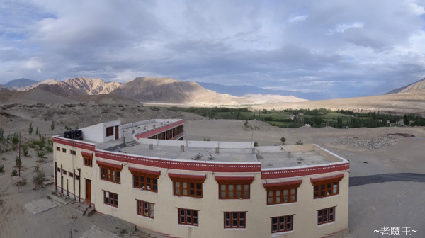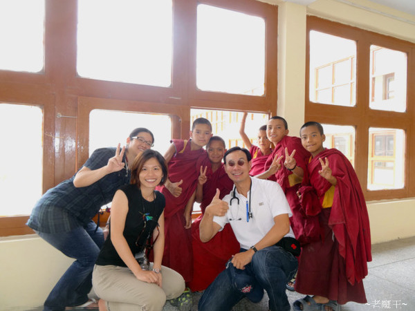 榮總的陳維熊醫師, 當年號召一群人募款, 贊助藏傳佛教的文化保存與推廣, 並且在拉達克這兒蓋學校, 教育小喇嘛. 經由不斷的申請與擴建, 現在每年會有學生團, 於暑假來這兒進行校外教學一個月, 教導小喇嘛英文和衛生常識 (醫學生也可當作實習分數). 而在他們駐紮期間, 選定一週, 由臨床醫師來做義診的服務. 這時, 就該我們出場啦! 思賢, 仲華和我, 與學生團的團長景右及領隊宇碩五個人, 擠一個房間, 另外三位學妹則和兩位女學生住. 空間雖小, 但晚上睡起來很溫暖. 不過每到傍晚的風沙頗強, 所以窗戶都要關緊, 否則很快的, 所有東西都會蒙上一層細沙.