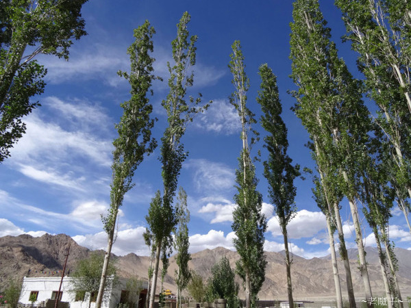 大地雖貧瘠, 然而, 隨時可見的白楊木, 依舊為這一片乾枯高原帶來不少綠意.