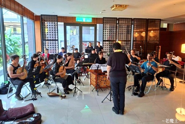 8 月 24 日星期日 我們早上抵達淡水的南加州社區, 先綵排走一遍, 於中午 1:30 pm 開場. 1. 阿里山映像 這首是劉文祥先生應 2013 年的嘉義神奇樂坊委託創作的曲子, 描述阿里山的日出, 雲海, 晚霞...... 我們在 2018 年和嘉義神奇樂坊合作演出時, 當時的指揮臨時刪掉一小節, 沒想到有好幾位團員剛好去上廁所, 沒聽到 (有些人則是沒在譜上做記號, 於是在演出時忘記要刪掉一小節), 結果演出時, 竟然大分家! 本來已經不大整齊的各聲部, 此時完全 "各奔東西"! (請見: 嘉義演出) 這回老師挑了這首來開場, 擺明了是要來 "雪恥". 我們中規中矩地走完, 除了吹笙的學弟似乎有點兒緊張之外, 我們終於成功表現出這一首該有的氣氛. 2. 搖著槳的茉莉小六 任重先生作曲, 將 "老六板" 和 "茉莉花" 這兩首曲子融合在一起, 算是一種創新的寫法. 3. 浣紗女 張曉峰先生寫的琵琶協奏曲, 描述西施的溫柔婉約, 以及被派去吳國當間諜的無奈與憤慨. 4. 沙漠玫瑰 原為王丹紅作曲的古箏曲, 後改編為樂團合奏曲. 描述大漠中, 沉重的駝隊漫步在飛沙中那種飄逸, 迷離的異國風情. 但玫瑰畢竟是熱情奔放的, 因此進入快板後, 立刻呈現活潑暢快的狂野舞蹈.