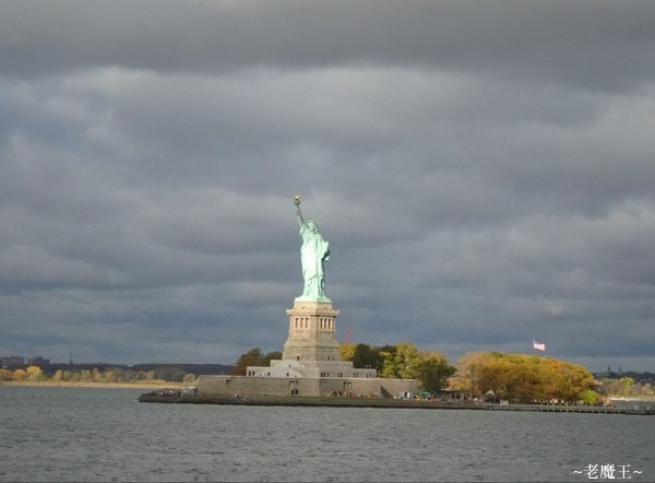 我們抵達時, 剛好船準備要關閘門了, 於是我們倆趕快跑上船, 一旁的人員一直叫著 "dont run, dont run." 我們還是用跑的, 免得要等到下一班. 後來看船班行程, 這渡輪是航行於 Staten island 和 Manhatan 之間, 每半小時一班, 而且全天 24 小時都有航運, 顯然每天有許多人搭渡輪來通勤. 原本氣象預報, 這兩天都會下雨, 但今天看來只是陰天, 還好. 船行平穩且快, 離開曼哈頓後, 不久, 就可以看到自由女神像. 我事先有跟桂津討論, 因為這回待在紐約只有 3 天, 所以捨棄自由女神的參觀行程, 免得光是為了看她就要耗去一天; 不料, 現在竟在這免費的渡輪上也可以看到, 賺到了, 呵呵. 航程約 20 分鐘, 下船後, 看這兒的街景, 已頗有秋意. (Staten island 也是紐約市的一個行政區) 我們去找一家很特別的餐廳; 因為桂津在飛機上看了一部電影 "奶奶廚師, Enoteca Maria", 裡面介紹了這一家很特別的 "有祖母味道" 的餐廳, 因此我們特地來拍照. 但此時還沒開店, 我們只能在門口拍拍照; 窗戶上貼了電影的海報, 意外看到還有兩組觀光客也來朝聖打卡, 呵呵. 接著, 走到上海灣 (upper bay), 去參觀 911 事件後, 在這兒建蓋的明信片紀念碑. 這是紀念 911 恐攻事件的罹難通勤者, 以明信片的方式, 表達家人想把訊息傳遞給罹難者的意念. 翻開的明信片, 面對當年的世貿中心方向, 兩片頁面上, 貼了罹難者的名字.