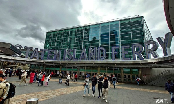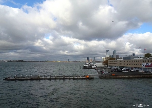 吃過後, 帶她沿著後方的馬路, 參觀華爾街金牛 (此時又是大排長龍), 穿過小公園, 最後來到南端的碼頭, 因為桂津查網路, 說這裡的渡輪是免費的!