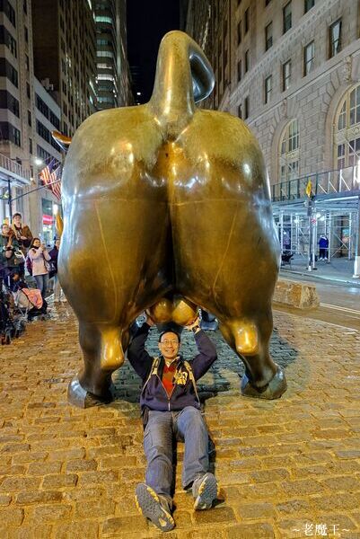透過 Michael 的介紹, 我才知道, 他們上班是沒有固定座位, 每天進公司後, 可以選擇你想坐的位置; 這樣的優點, 是彈性很大, 不會死板, 但缺點, 就是萬一你被解雇, 可能你同事要隔很久才會發現你不見了! 尤其很多時候是在線上上班, 因此同事間的互動比較少. 11 層樓的公司大廈, 各有不同的會議室和辦公室, 許多小型辦公室的布置也很活, 乍看都以為是一些休息室. 還有免費的水果和咖啡, 可以恣意享用, 因此我們一人喝了一杯咖啡, 吃一顆蘋果, 嘿嘿. 參觀完一圈, 發現跟我的工作領域有天壤之別, 那種 "工作環境的概念" 很不一樣, 讓我有耳目一新的感覺. 晚上 Michael 請我們吃西班牙餐, 味道還不錯, 價位卻不便宜. 美國最討厭的, 就是看到的價位, 還要再加稅, 最後還要給小費. 紐約的小費, 已經是從 20% 起跳了, 雖然可以硬著頭皮點選 "no tip", 但 Michael 強調工作人員的薪水不高, 主要是從小費中來賺點兒利潤, 因此他都習慣給 20% 或甚至 25% 的小費. 回家前, 經過華爾街金牛, 終於人群少多了, 因此我上前去拍照. 來紐約 4 次, 第一次跟這金牛合照; 聽說摸蛋蛋會發財喲, 呵呵!