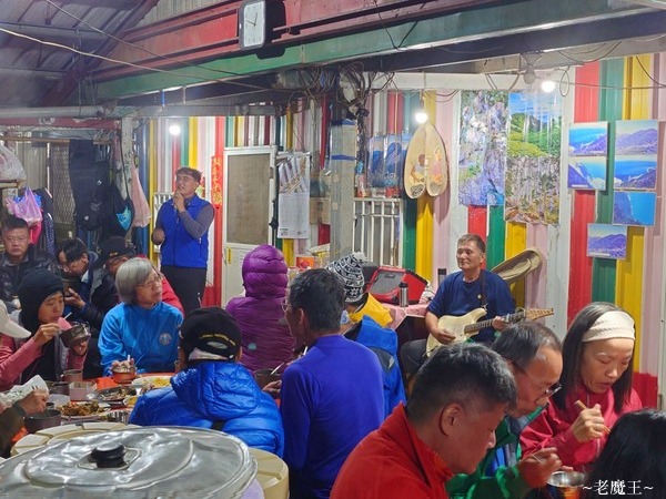於是, 氣氛更熱鬧了, 簡老闆說要唱 "太魯閣族的祈福歌", 所有人到廣場上圍成一圈, 手拉手跳舞; 又在老闆娘的指導下, 變換舞姿, 吆喝助興, 開心地像小孩一樣! 跳了十幾分鐘, 還真是有點兒喘. 回到座上, 喝酒聊天, 並且和太管處聯絡感情, 這才知道, 明後天要爬的兩座山, 太管處還沒正式開放, 理由是 "步道還沒完全整理好".