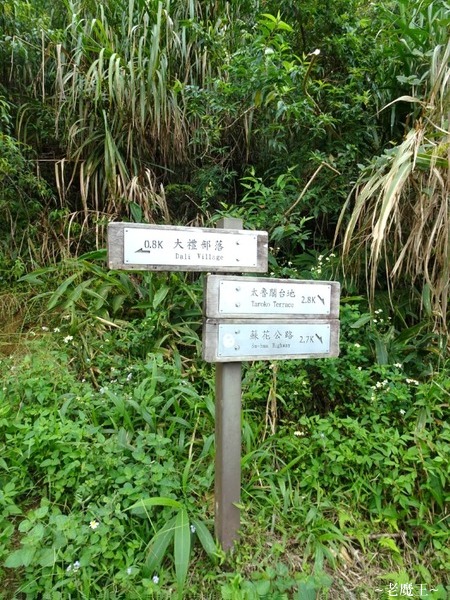 去年 4 月 3 日的大地震後, 太魯閣幾乎面目全非, 只剩立霧溪出海口這一段算是勉強完整. 但上個月的颱風, 又造成極大的破壞, 導致太魯閣國家公園管理處 (簡稱 "太管處") 一度封閉了所有登山步道, 直到最近才又逐漸開放. 過了 1.3K 的得卡倫步道後, 便是一樣陡峭的原始林道. 這一段步道有好幾處非常陡, 甚至需要拉繩索, 但我們 8 個人始終走在一起, 北醫登山社的校友團則已經依腳力的不同而四分五裂. 我們於 11 點半走上砂卡礑林道, 在這兒遇到太管處的淨山團. 原來太管處的主任, 帶了保育志工, 巡山員和登山嚮導來此淨山, 順便巡視登山步道並開始作修復. 我對這樣的行為感到非常尊敬, 而且遇到老朋友嚮導, K2 大哥, 他悄悄跟我說 "哎喲, 因為年底到了, 要把經費消耗掉, 才會在 6 月淨山過, 現在又來一次!" 哪尼~ 害我剛剛崇拜了一下! 這兒有大禮和大同兩個部落, 沒有正式的道路, 所有原住民出入都是要自己爬山; 他們唯一小小輕鬆一下的, 就是在這砂卡礑林道可以開機動三輪車或騎機車, 來載民生物資. 所有人在這兒休息, 並討論行程, 發現我們今晚會和太管處 22 人住同一間民宿, 因此互相問好聲中, 他們前往立霧山去淨山, 我們則往下切, 到大禮部落, 準備用餐. 途中看到當年運送物資的流籠遺跡, 如今聽說還是可以載貨物, 一公斤 25 元, 但禁止載人 (因為曾經有人墜落死亡過)!! 進入大禮部落, 這裡已經杳無人跡, 只剩幾戶人家還住在這兒, 其他大多數都搬到山下的富世村了 (這裡在行政劃分上, 也是秀林鄉富世村). 這一間是當年的派出所, 後來一度成為小學教室. 我們來到曾經非常知名的禮拜堂, 在這兒放下背包, 各人吃著自己準備的午餐. 吃飯當中, 飄起了一點點毛毛雨; 因此我們不多逗留, 拍拍合照, 便出發前往今晚的目的地--> 大同部落的彩虹屋民宿.