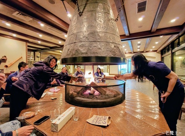 我勉強吃得夠, 但淑珠突然說 "我吃了個寂寞!" 原來她今天的雪靴大小不對, 早上滑地很痛苦, 中午以後為了換靴子, 又來回走了好幾趟, 累到她非常餓! 晚上我們幾位到大廳的松木爐火旁喝酒吃點心, 桂津買了棉花糖來烤, 大家跟著起鬨來玩. 不料, 這棉花糖太甜, 烤過後的棉花糖帶有松香味, 口感怪怪的, 所以她們覺得不好吃.