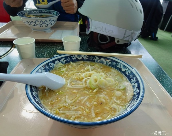 中午吃著還算可以的拉麵, 才睡了 10 來分鐘, 怎麼又到了集合時間!? 這幾位教練很認真, 教學時間完全沒偷工減料, 甚至還不停地加碼. 下午因為天氣變差, 下起雪來, 加上氣溫下降, 所以 1:30 pm 搭纜車時非常冷, 我在車上一直發抖, 直到下車後開始滑動, 才又熱身起來.