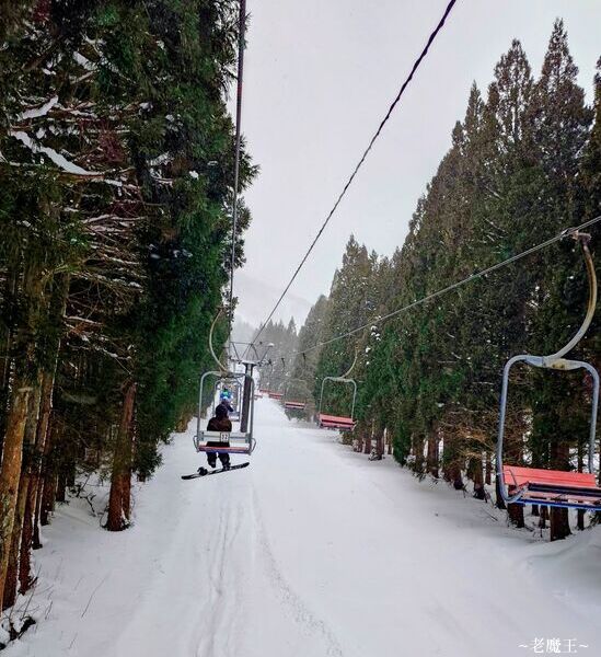 鬼首雪場滿小的, 總共有 8 條雪道, 6 座纜車 (平日只開放 4 條纜車線), 而且可能生意不是太好, 雪票是紙本的, 不是磁卡. 一開始大夥兒被帶往綠線, 當作 check ski. 但這綠線其實滿陡的呀, 雯子和 Elton 一滑出沒多久便跌倒. 第二趟搭纜車上來時, 教練們立刻重新分組, 文華和雯子被播去瑞婷教練那一組, Elton 後面一段表現不俗, 獲得留下來的機會. 接著練習滑紅線, 美筑教練一一糾正我們的動作, 並且開始要求盡量做到 "併板". 我們一一練習, 偶爾跌倒, 大致上有勉強做到併板的動作, 也就是說, 當我們轉彎過去穩定了之後, 就會想到要併板, 呵呵!