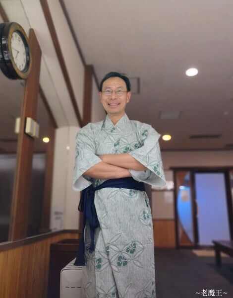 我笑說 "我就不信沒有日本人在這兒摔過跤!?" 但這個溫泉室, 居然聞到很舒服的檜木香, 是一大賣點. (該不會是當年從台灣掠奪過來的吧? 晚上泡過澡後, 溫暖地睡去. 當然, 照慣例, 要先穿和服拍個照~
