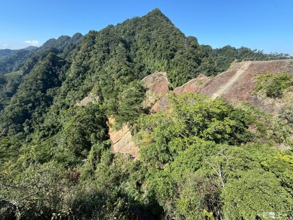 接下來, 我連絡不到 Henry, 我猜他應該是往岔路先回去了, 所以接不到電話 (後來他說, 他看到我的簡訊時, 已經快要走到峭壁雄風, 所以從那邊的岔路下山的), 於是跟著大家往峭壁雄風過去. 沒想到, 我看錯方向, 竟然腰繞那一塊峭壁, 越走越奇怪之下, 我突然發現我已經快要走到茄苳樹休息站了!? 我立刻知道剛剛走錯路, 應該是切了捷徑過來; 因此把背包放下, 走回峭壁雄風去迎接其他夥伴.