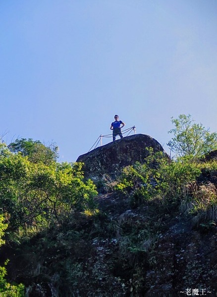 這次的夥伴, 體力腳力都強, 麗純甚至跟我在第一段垂直岩壁那兒比賽, 要看誰爬得快! 不久, 上來牛背山, 在這兒賞景拍照.