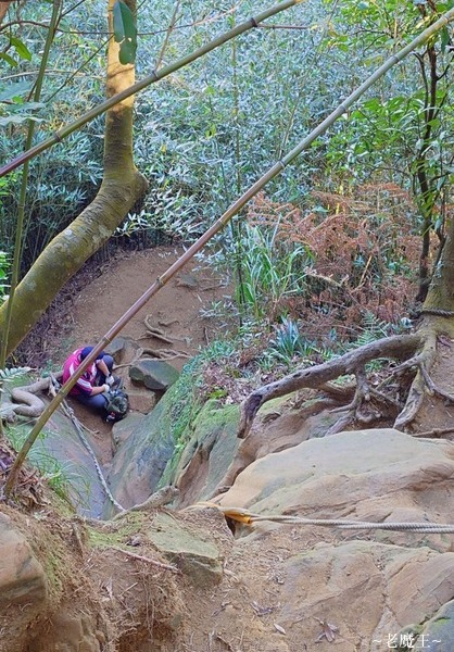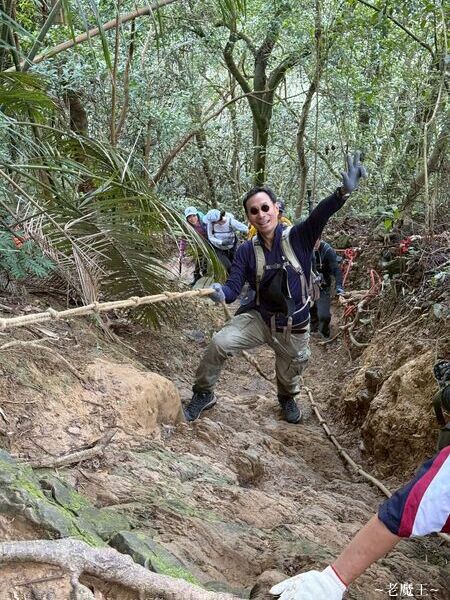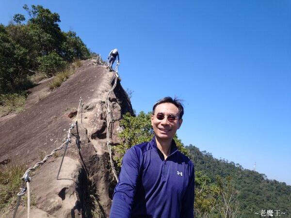 好在 Henry 沒有硬要跟上來, 否則最後這 170 公尺, 他應該還是會卡關. 因為這一段山徑沒有比較緩和的腰繞步道, 只能硬著頭皮陡上. 以他今天的狀況, 應該是上不來的. 我說 "還是要來個招牌動作."