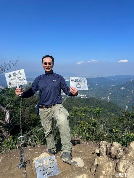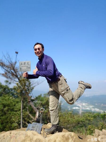 五寮尖, 標高 630 公尺, 從登山口到這兒, 落差 530 公尺. 大家先拍獨照, 再拍合照.