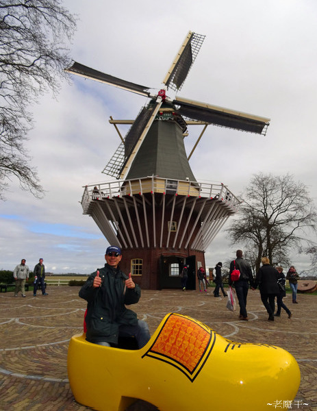 這風車可以進去參觀, 看不同方向的大齒輪, 在風力的推動下, 彼此契合運作. 前面則是一排很典型的鬱金香 (這下可沒認錯花了)!