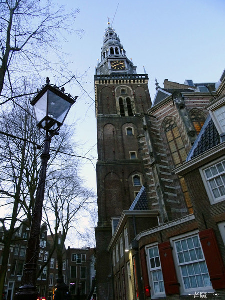 老教堂建於 13 世紀, 已經有 800 年歷史了. 如今依舊會定時敲鐘, 只是, 我觀察了幾天, 發現鐘聲響徹紅燈區的時間, 好像不是很準時呀! (有時候是在整點, 有時候卻又差了 3-4 分鐘!?) 日暮時分, 有些小房間的紅燈已亮, 遊客越來越多.
