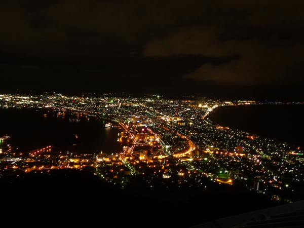 函館在地形上呈現一個 "雙C" 的造型, 加上居住密集, 到了晚上, 燈火輝煌. 從山上俯瞰, 像是兩條燦爛的銀河交會, 寧靜卻亮麗. 有那麼一剎那, 我覺得自己可以伸手一撈, 就從河裡拾起許多星星!