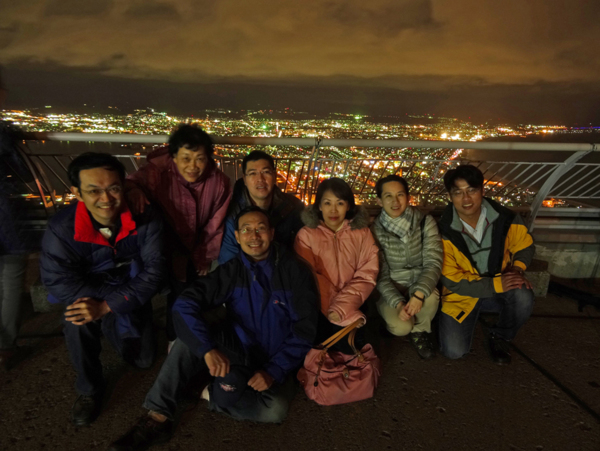參觀完這一區之後, 為了和其他團錯開以避免塞車, 我們先回到今晚住宿的飯店. 大夥兒放下行李, 到餐廳享用自助餐. 這一家 "湯之川祥苑觀光大飯店" 的晚餐滿豐盛的, 還有松葉蟹可以吃到爽為止. 餐後, 我們再度出發, 前往函館山看夜景. 這位導遊的安排果然有效, 上山途中, 斷斷續續有遊覽車下山; 除了其中一段 "單向通車路段" 稍微等了一下之外, 一路順暢上山, 終於看到我這一趟的第一目的地--> 世界三大夜景之一的 函館夜景!