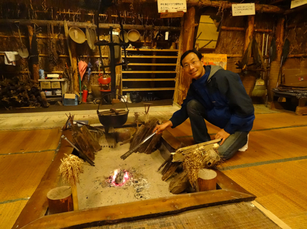 來到這兒, 許多人去買馬油 , 聽說日本的馬油, 以 "昭和新山馬油" 的品質最好. 但我對馬油沒興趣 (總覺得好油膩), 所以跟文華先去逛後面的愛奴部落. 雖然當年也來過這兒, 但當時一大堆人嘻嘻哈哈, 都沒仔細看看裡面的擺飾. 這回利用只有兩個人的機會, 利用別人在血拼的時間, 好好把牆上的掛圖 (介紹愛奴人的狩獵生活) 和農作工具仔細看它一遍.