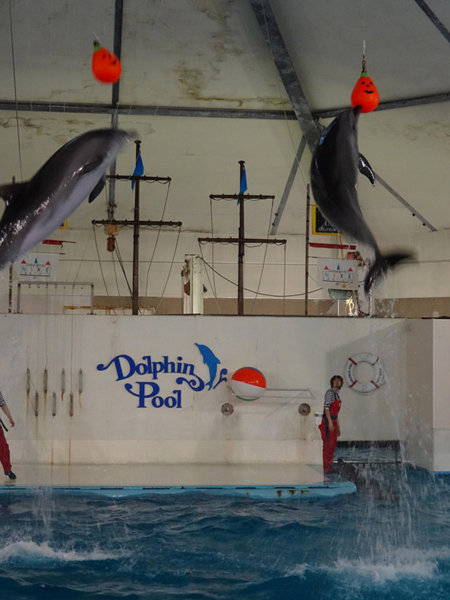 根據導遊幫我們規劃的行程, 我們先看海豚秀, 接著參觀海洋館, 再來是看海獅秀. 中午 1: 15 集合, 在裡面的餐廳吃中飯, 然後看 2 點鐘的企鵝秀. 時間規劃地剛剛好, 我們也便按表操課, 從海豚秀看起.