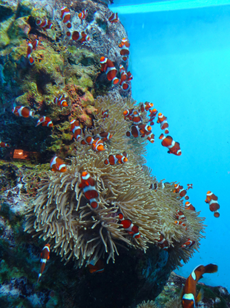 一大群的小丑魚裡, 細分之下, 可以分出三種, 厲害的是, 牠們竟然彼此相安無事, 我觀察了一會兒, 發現牠們真的彼此不會追趕對方呢! 不知道是習慣了彼此, 還是因為沒有幼魚要保護, 所以能互容對方?