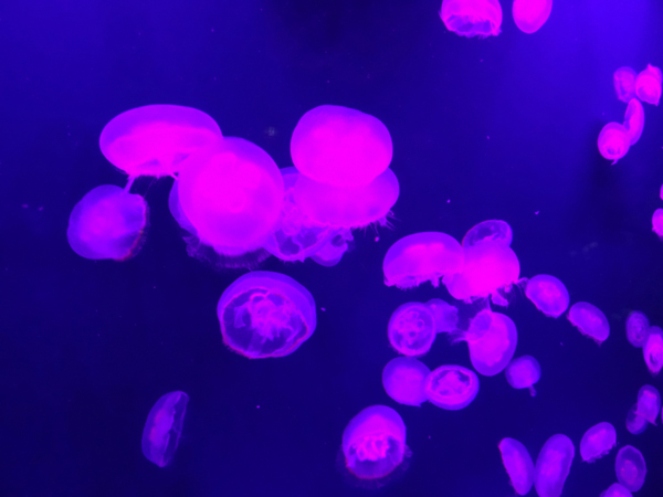 穿過海底隧道後, 有一區水母群, 在燈光變換下, 漂浮彈縮, 相當夢幻.
