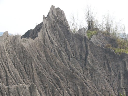 由青灰岩構成的「月世界」惡地景觀,長期草木不生,有如荒漠般,而雨季時泥岩崩塌嚴重,一直被農民要求改善地質好維生;不過近年來興起的地質、生態之旅,卻賦於「月世界」地形新生命。 以面積廣泛的「草山月世界」為例,青灰泥岩造就了許多特殊植物與林相,例如每年三、四月間,就有成千的紋白蝶,在左鎮岡林地區農地飛舞,五、六月間可以在竹林裡發現螢火蟲出沒,還有大冠鷲也常盤旋此地。 月世界裡種植的竹子相當廣泛,種類以刺竹與長枝竹為主,在這片充滿大量鹽和碳酸鈣的泥岩中,每年二月開始,綠色的竹葉開始變黃,三、四月間竹葉變為橙色甚至於紅色,色彩繽紛,不遜於楓葉變紅的時刻,這段時間,左鎮鄉各界主辦「彩竹節」作慶祝。 最近五年來,縣府與左鎮各界為了創造「草山月世界」的新價值,取道南一六二縣道、南一七一縣道,開發各區域的景點。 在南一六二縣道,是以二寮與岡林地區為主,傳統的古角厝老建築、岡林教會,還有二寮的二寮觀日亭,可以俯看二寮地區的青灰泥岩的獅頭、伏牛。 一七一縣道還有支線,可以進入鹽水坑地景點,沿途有多處私人休息站,其中如泥火山、青瓜寮的攔泥壩,都是值得一看的景點。 農委會水土保持局則在左鎮「草山月世界」旁的台南縣龍崎鄉牛埔地區,依「生態工法」闢建牛埔水土保持示範區,去年並號召全國水保義工到牛埔大會師。 水保局認為,牛埔青灰岩山谷經修築土壩農塘蓄水,種植抓地力強的植物強化泥岩,有效減少沖蝕坍方,加上濱水綠帶、生態池等生物棲地與環場木步道、竹屋、涼亭等休憩設施,可供遊客體會自然生態工法整治成果。 一年過後,原本死氣沈沈、人煙罕至的溪谷,如今已是山水如畫,每周有上千人參觀,集水區充滿生機,已發現鳥類廿六種、兩棲爬蟲類九種、魚類七種、蝦一種,植物有一百零四種,包括稀有植物沙楠子與台灣海棗。 成大地球科學系副教授鍾廣吉指出,國外多年經驗顯示,與其想盡辦法要改造惡地形,還不如尊重大自然,任由地形自然變演,頂多針對可能嚴重坍方影響人員安全、損害農作物的過陡坡,儘量配合自然地形走向整坡,讓坡度變緩、地層水份順利排洩就夠了,不要妄想「人定勝天」,否則得不償失。 今年六一二洪澇過後,加上海棠颱風來襲,牛埔受創嚴重,再也看不到青翠山形,如此一來,正被鍾廣吉說中了。 |