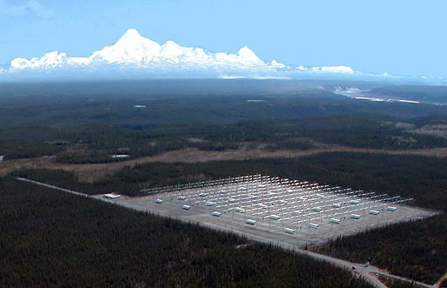 HAARP,比核彈還厲害﹐無影殺手 - Weapon without finger print to trace 高頻有源電離層研究計畫(High Frequency Active Auroral Research Program,HAARP) 是美國國防部海空軍主導下設立的計畫,基地設於阿拉斯加州 Gakona 軍事基地內,內部設置180座天線,每根天線都有十幾米高,佔地達33英畝,構成一個壯觀的金屬方陣。這個天線陣利用大功率高頻波使地球電離層變熱以模擬 太陽作用,進而設法在某些確切的地點改變電離層的結構。據說全球一共有5處類似的裝置,其中阿拉斯加這一個威力最強大。 HAARP 共有360個發電機,可 以發出360萬瓦功率的強大信號,然後採用相控陣(Phase Array )的方法將信號,聚束髮射到電離層中的指定部位。HAARP功率之強大,確是絕無僅有的,其功率相當於世界上最大商用電臺功率的72000倍。美國空軍已 經要求將其發射功率提高到1000億瓦。