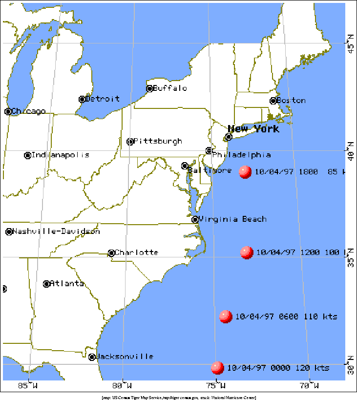 她吹襲了古巴、海地、牙買加、多米尼加、巴哈馬等加勒比海國家後便直接向美國東岸的維吉尼亞州、華盛頓州、紐約州、馬里蘭州、新澤西州..等,甚至吹襲至北面的加拿大。