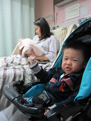 但,並不總是每一位媽媽都是好運的~ 當 老婆在恢復室「靜養」的時候,一簾之隔的一家子,卻無法跟我們一樣欣然喜樂。原本看他們攙扶著一位媽咪「走」到恢復室我就有些訝異了,且當我抱著晨少在恢 復室外哄睡、等待老婆轉入住院病房時,差點不慎滑倒,才驚覺地上有灘血跡!不敢上前做任何的關心,沒多久就看到一位老先生臉色陰鬱地進來,焦急拿出手機尋 人,而一位老太太剛好也從隔壁走出來打招呼,相對無言只有淚千行;老先生一抹淚,護理師走過來問他要看看嗎?「看看」?原本不懂其意的我,這才發現老先生 老太太兩人走進一間空的待產室,而護理師隨後抱著一個方正的紙箱走了進去,剎那間,我明白那淚水的苦澀與沈重~ 相信每一段好姻緣的結合都是因為愛!當她願意冒著生死風險為你產下寶寶,真的不是站在一旁拿著相機、等著拍照的把拔可以想像的。可能在那一瞬間,我們等到的是喜極而泣;也可能在那一瞬間,面對的就會是潰堤的淚水。真的!怎能不愛妳?老婆~