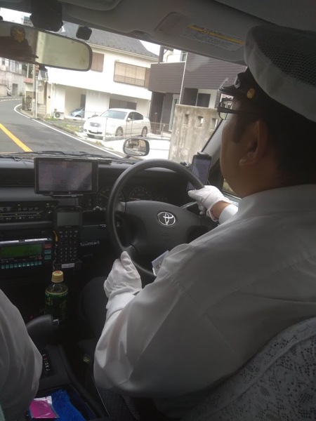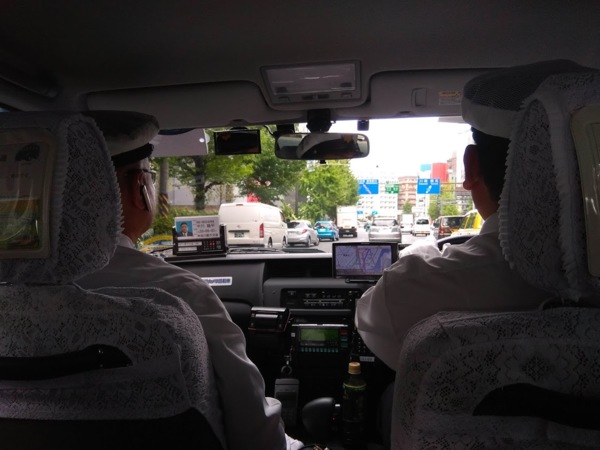 我們坐上的計程車好像是實習計程車,日本是右駕,所以左邊那個感覺是個先輩坐在副駕指導後輩的樣子