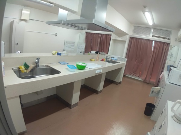 這裡兩邊各有兩個電爐,也有公用的洗碗精,每一寢都有自己號碼的小櫃子,可以放自己的廚具和材料等等。隔壁有個交誼廳,交誼廳那裏會有個箱子放一堆以前人留下來的廚具,或有人亂丟在廚房的廚具什麼鍋子啊碗啊都會放在那裏。所以如果缺鍋子缺鏟子缺杯子都可以去那裏挖挖看~