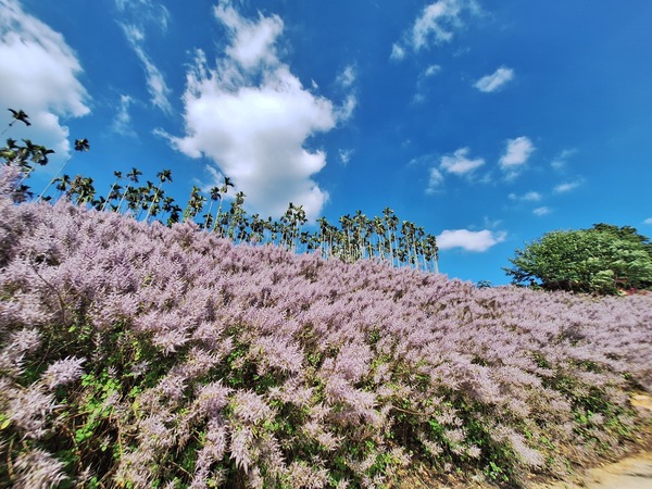 先,來到之前爆紅的這一片「粉紅山丘」,因為園區的麝香木是種植在坡地上,當麝香木盛開時那淡淡的粉紫色花海看起來實在超級夢幻,因此而有了這麼美麗又動力的稱號。 ▼第一眼看見粉紅山丘真的好讓人震撼,在風中搖曳的粉紅花浪實在好壯觀也讓視覺好驚豔。 ![]() 也讓每一位來到這裡賞花漫遊的旅人,都會忍不住的就拿起手機、相機大拍特拍,想將眼前的美景通通捕捉下來,留下最美好的旅程回憶。 喜歡拍照的我們自然也不會錯過這麼美又這麼夢幻的景色,一整片滿開的麝香木花海,是最粉嫩夢幻的背景,無論怎麼拍,照片都是仙氣爆表,漂亮極了!